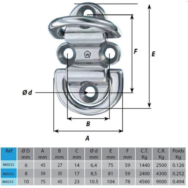 Installez un point d’amure pour votre voile d’avant avec la cadène articulée WICHARD. Son double anneau permettra de fixer un étai largable & une poulie sur un seul & même point d’ancrage. Les voiliers ont bien souvent beaucoup d’équipement nautique installé sur le pont et il est important d’optimiser l’espace disponible. Gage de sécurité en mer, ce produit aux qualités marines s’installera facilement sur le croiseur côtier & même sur le pêche promenade.