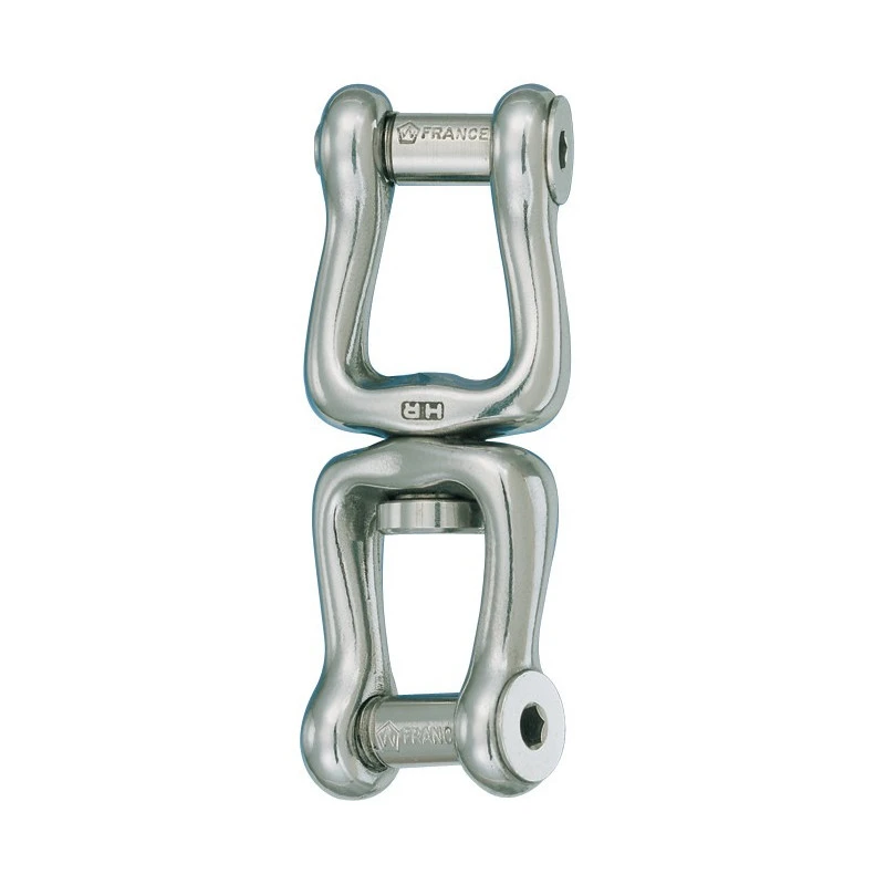 Spécialement conçu pour pouvoir assurer la rotation de 2 pièces ensemble, l’émerillon forgé avec axe WICHARD dispose d’une charge de travail & de rupture remarquable. Vous pourrez l’utilisez pour de nombreuses applicationla mise en place de poulie à bille ou encore le hale-bas de tangon. Ce équipement nautique est proposé est proposé axe autobloquant ou axe 6 pans creux.