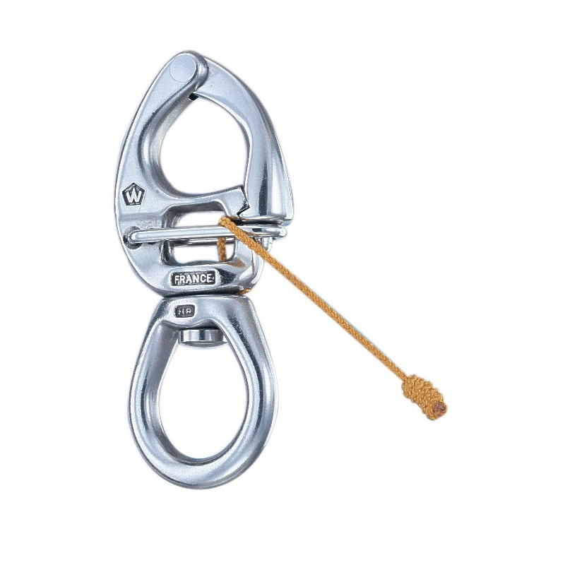 Le mousqueton largable sous charge WICHARD à grand oeil pourra venir s’installer sur les cordage de fort diamètre de votre voilier. Equipement idéal pour gréer l’accastillage du bateau.
