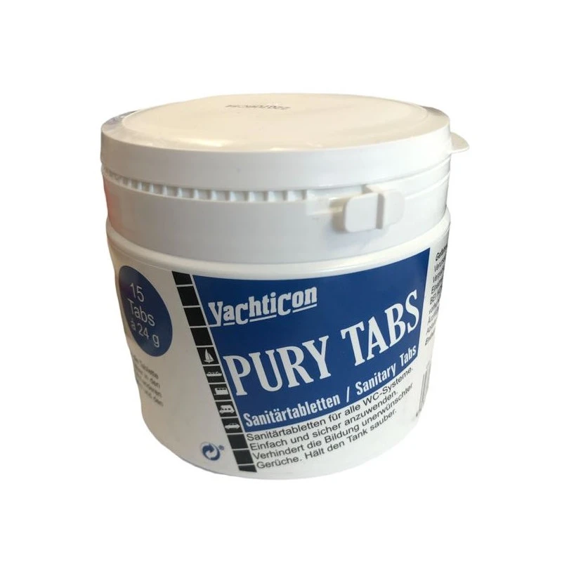 Le Pury Tabs se présente sous forme de tablettes (des pastilles de 25 grammes environ) et se laisse tombé directement dans le réservoir à eaux noires dans lequel sont stockés les eaux d’évacuation des WC du bateau. Elles permettent de prévenir des mauvaises odeurs surtout en été en laissant la cuve plus propre.